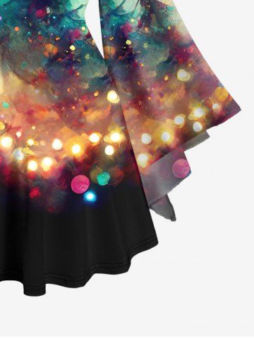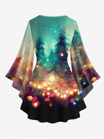 Plus Size Christmas Tree Light Sparkling Sequin Glitter 3D Print Lattice Crisscross Flare Sleeve T-shirt - Multi-a - 2x