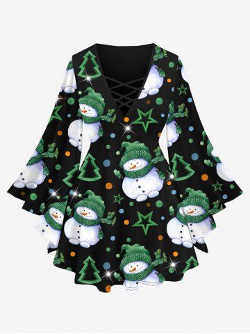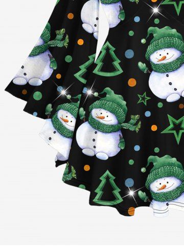 Graphic Long Sleeves > Plus Size Christmas Tree Snowman Star Glitter 3D Print Crisscross Flare Sleeves T-shirt