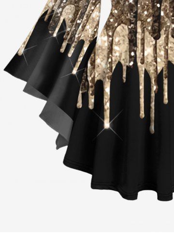 Graphic Long Sleeves > Plus Size Flare Sleeves Glitter Sparkling Sequins Paint Drop Print Lattice Top