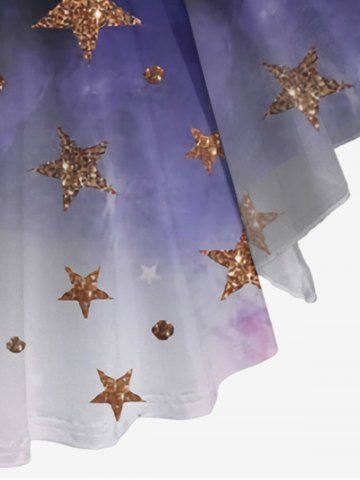 Plus Size Flare Sleeves Glitter Sparkling Stars Print Ombre Lattice Top - Concord - 2x