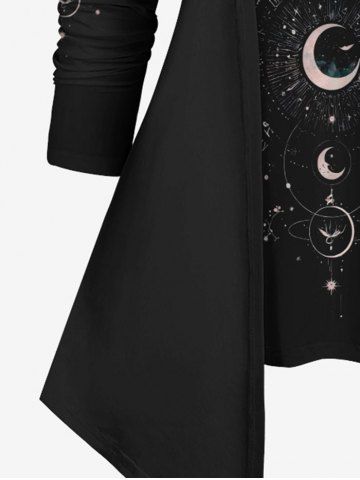 Graphic Long Sleeves > Plus Size Galaxy Moon Sun Star Print 2 In 1 T-shirt