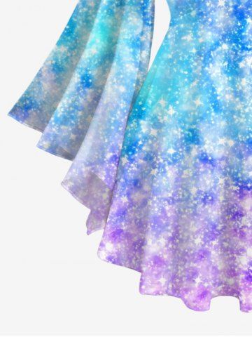 Plus Size Galaxy Ombre Sparkling Sequin Glitter 3D Print Lattice Crisscross Flare Sleeve T-shirt - Multi-a - M