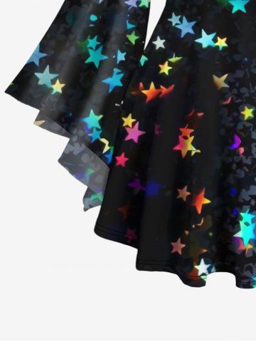 Glitter Colorful Stars Bowknot Printed Flare Sleeves Ombre Lattice Top and Flare Pants Plus Size Matching Set