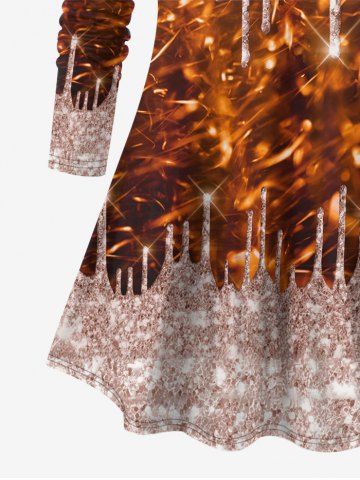 Plus Size Paint Drop Fireworks Glitter Sparkling Sequin 3D Print Long Sleeve T-shirt - Coffee - 3x