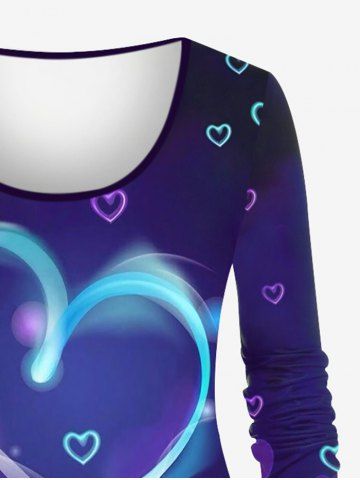 Plus Size Valentine's Day Heart Glitter 3D Print Long Sleeve T-shirt - Concord - M