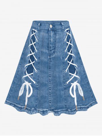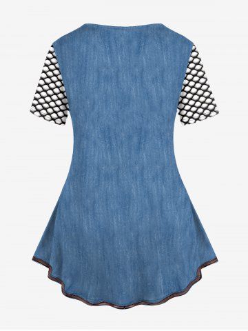 f*****353D Checkered Jeans And Figure Print T-Shirt and 3D Jeans Lace Up Print Skirt Plus Size OutfitColor: BLUEgreat fit and absolutely adorable. soft material and well made