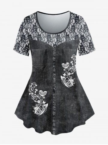 c*****24Plus Size 3D Jeans Butterfly Flower Printed Capri LeggingsColor: BLACK Size: 4X | US 26-28un mot : magnifique!! un vrai 4x comme je prends. normalement. le tissus est léger, confortable, c'est un imprimé faux jeans mais tout aussi beau ,!! on dirait su satin , j'adore !! merci beaucoup
