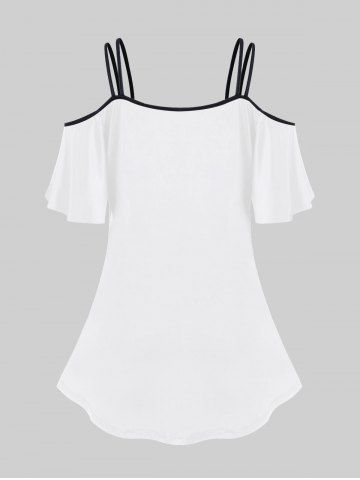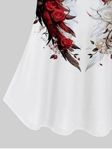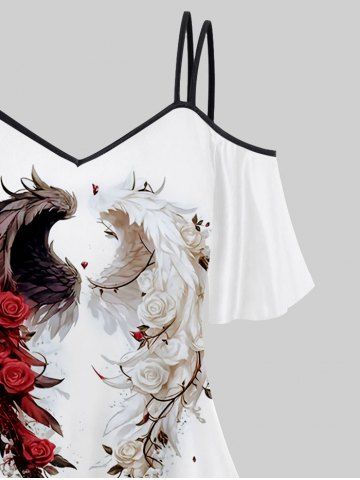 q*****e4Cold Shoulder Rose Flower Feather Wings Heart Print Cami T-shirt and Flare Pants Plus Size Matching SetColor: WHITEbought it to wear to wedding, it's just like the picture, very beautiful can't wait to wear it.