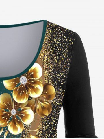 m*****y5Plus Size Colorblock Flower Butterfly Sparkling Sequin Print T-shirtColor: DEEP GREEN Size: 4XSuch a pretty shirt, I love green and the gold works with other pants and outfits. Really fun, gotten a lot of compliments. Great Price, really comfortable, very happy!