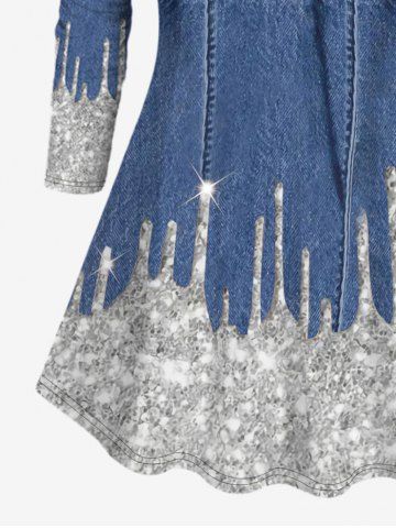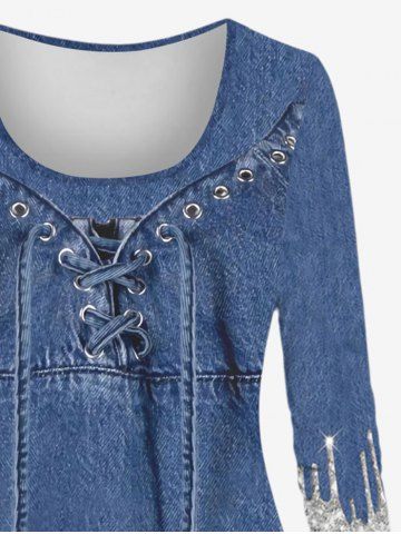 Grommets Lace Up Sparkling Sequin Paint Drops Dnim 3D Print Plus Size Matching Set - Blue Gray