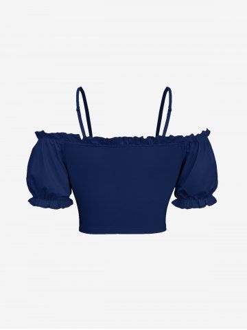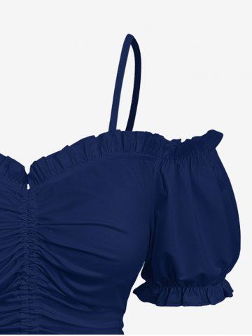 Hibiscus Flower Leaf Tropical Print Plus Size Hawaii Matching Set - Deep Blue