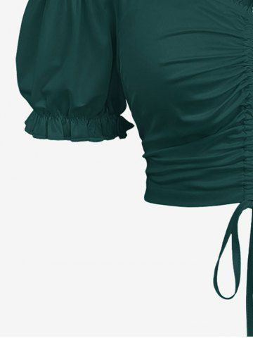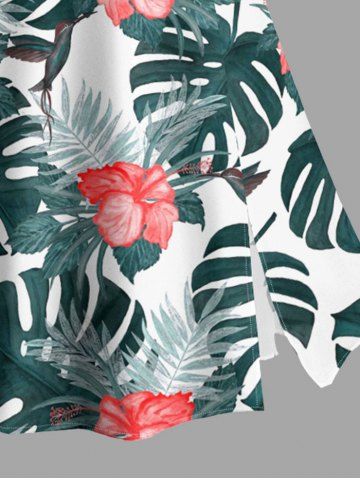 Hibiscus Flowers Tropical Leaf Print Plus Size Hawaii Matching Set - Deep Green