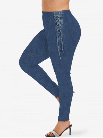 N*****K5Plus Size Lace Up Button Pocket Denim 3D Print T-shirtColor: DEEP BLUE Size: 5Xsehr schön. angenehm zu tragen.