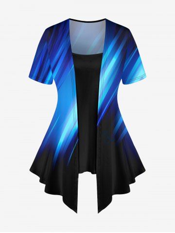 Graphic Outfits > Ombre Colorblock Glitter 3D Print Plus Size Matching Set