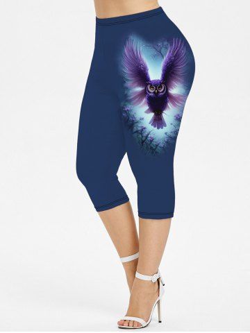 N*****l5Galaxy Owl Branch Print Short Sleeves T-shirt and Capri Leggings Plus Size OutfitsColor: DEEP BLUEsuper ensemble agréable a porter doux et léger et sèche rapidement idéal pour l'été