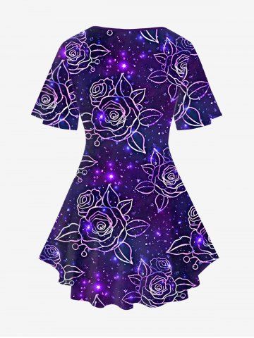 o*****o5Plus Size Crisscross Light Beam Floral Printed V-Neck Short-Sleeved T-Shirt and 3D Light Beam Flower Colorblocks Printed Flare Pants OutfitColor: CONCORDfits me just right I love it so much right size and everything