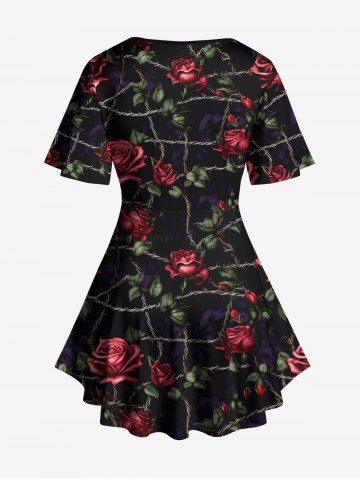 Rose Flower Rope Net Print Plus Size Matching Set - Black