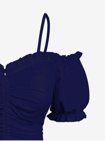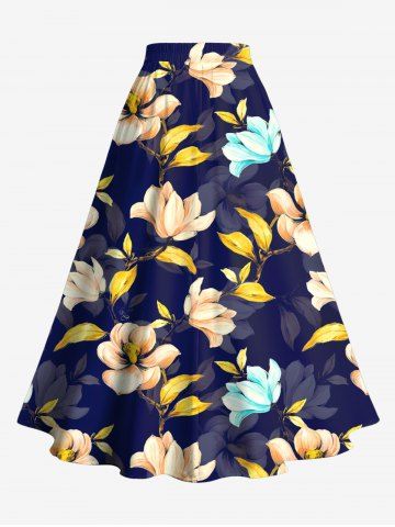 Solid Cinched Cami Top and Ombre Flower Leaf Branch Print Hawaii Split A Line Skirt Plus Size Matching Set - Blue