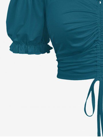 Solid Cinched Top and Ombre Watercolor Flower Branch Print Hawaii Split A Line Skirt Plus Size Matching Set - Green