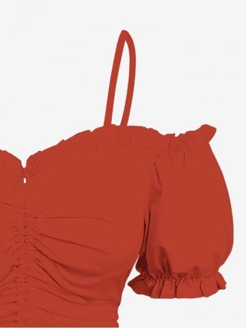 Solid Cinched Top and Tropical Leaf Hibiscus Flower Print Hawaii Split A Line Skirt Plus Size Matching Set - Orange