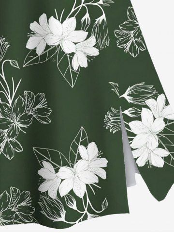Solid Ruffles Cropped Top and Hibiscus Flower Leaf Branch Print Hawaii Split A Line Skirt Plus Size Matching Set - White