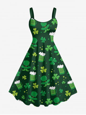 St. Patrick's Day Hat Cloves Beer Print Plus Size Matching Outfit For Couples - Deep Green