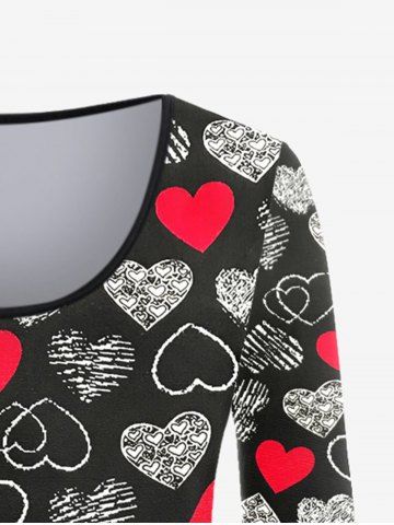 Plus Size Heart Striped Print Long Sleeves Top and Leggings Pajama Set - Black - S