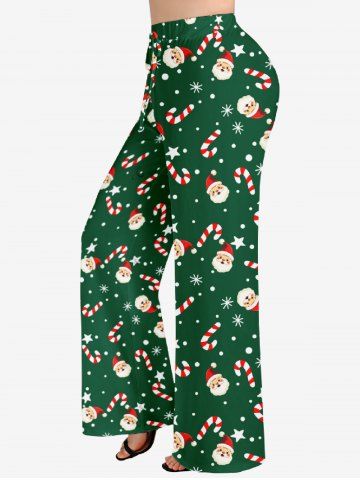Plus Size Women's Christmas Santa Claus Snowflake Candy Print Drawstring Wide Leg Pants - Green - 6x