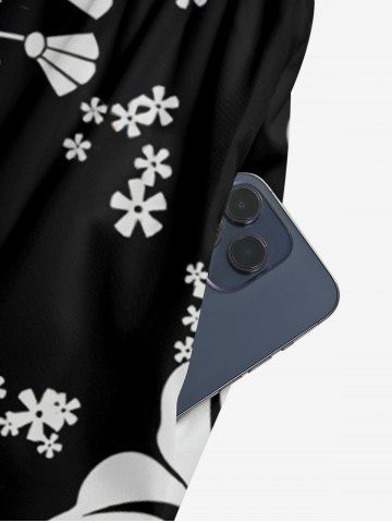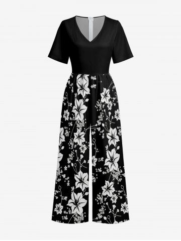 Flower Print Hawaii Wide Leg Jumpsuit - Black - Xs