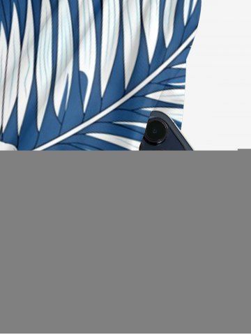 Flowers Tropical Leaf Print Hawaii Wide Leg Jumpsuit - Blue - S