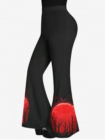 Gothic Sun Tree Bat Print Pull On Flare Pants - Black - Xs