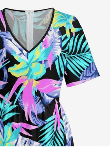 Graphic Pants > Hibiscus Flowers Tropical Leaf Print V Neck Hawaii Wide Leg Jumpsuit