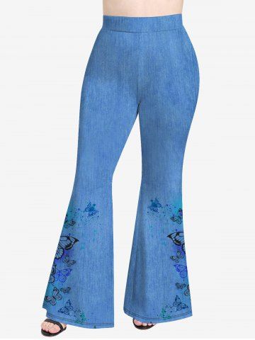 R*****e4Plus Size 3D Butterfly Printed Jeans Button T-Shirt and Paint Splatter Jeans Printed Flare Pants OutfitColor: BLUEAnother lovely outfit. The trousers are a bit big but otherwise perfect. It feels good against my skin thank you