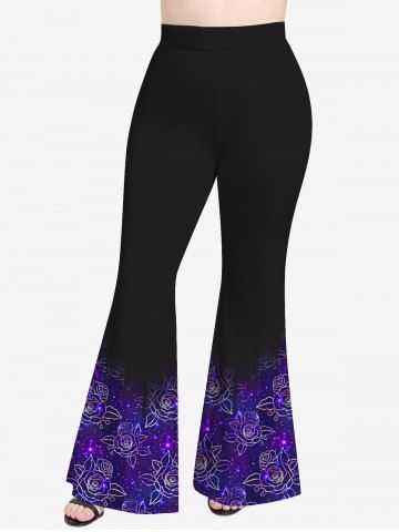 o*****o5Plus Size Crisscross Light Beam Floral Printed V-Neck Short-Sleeved T-Shirt and 3D Light Beam Flower Colorblocks Printed Flare Pants OutfitColor: CONCORDfits me just right I love it so much right size and everything