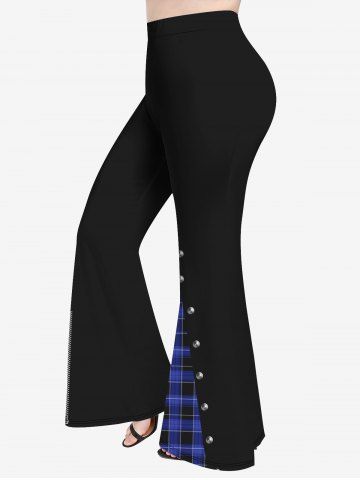 Graphic Pants > Plus Size 3D Plaid Button Zipper Print Flare Pants