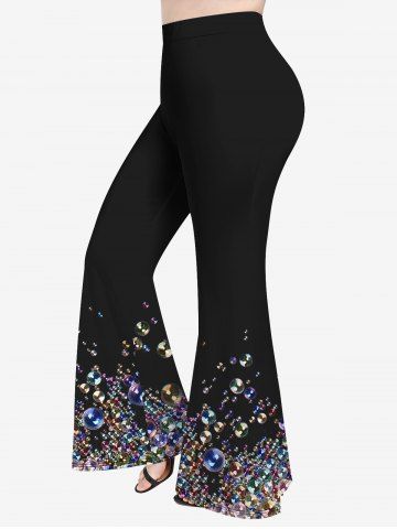 Plus Size Bubble Glitter Print Flare Pants - Black - L