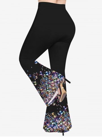 Plus Size Bubble Glitter Print Flare Pants - Black - 1x