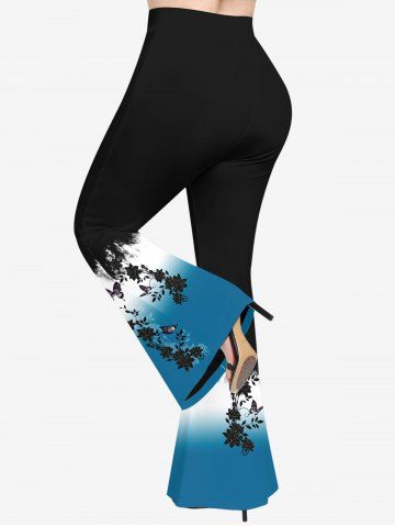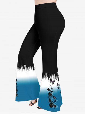 Graphic Pants > Plus Size Butterfly Floral Leaf Print Ombre Pull On Flare Pants