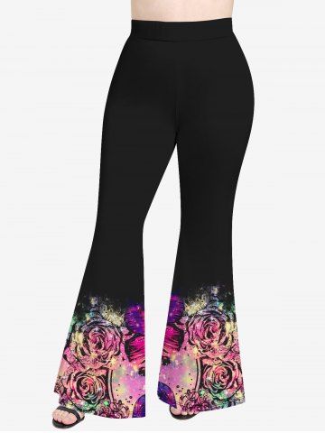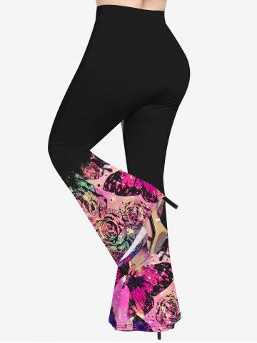 Graphic Pants > Plus Size Butterfly Flower Glitter Print Flare Pants
