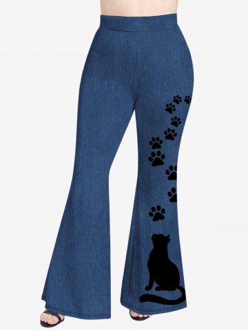 Plus Size Cat Claws Denim 3D Print Flare Pants - Deep Blue - 5x