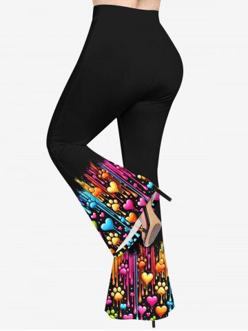 Plus Size Cat Paw Heart Paint Drop Print Flare Pants - Black - S
