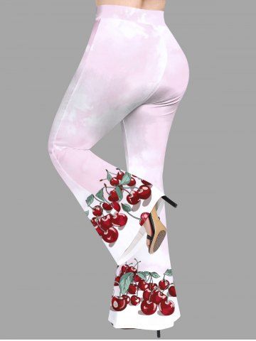 Plus Size Cherry Leaf Print Ombre Flare Pants - Light Pink - 5x