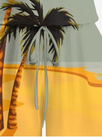 Plus Size Coconut Tree Beach Colorblock Print Cinched Hawaii Romper - Green - S