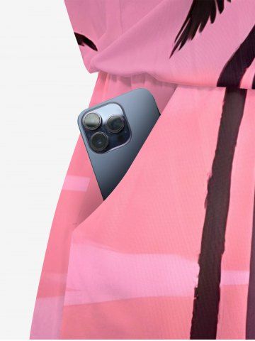 Graphic Pants > Plus Size Coconut Tree Bird Moon Ombre Print Cinched Hawaii Romper