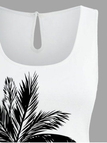 Plus Size Coconut Tree Bird Seascape Print Cinched Hawaii Romper - White - L