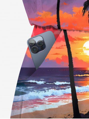 Graphic Pants > Plus Size Coconut Tree Cloud Sun Seascape Print Cinched Hawaii Romper