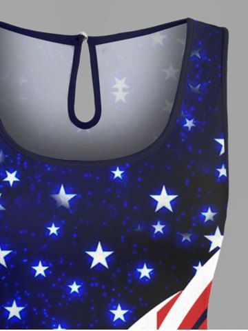 Plus Size Coconut Tree Curve Patriotic American Flag Print Hawaii Drawstring Pocket Romper - Blue - L