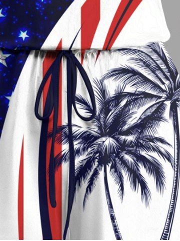 Graphic Pants > Plus Size Coconut Tree Curve Patriotic American Flag Print Hawaii Drawstring Pocket Romper