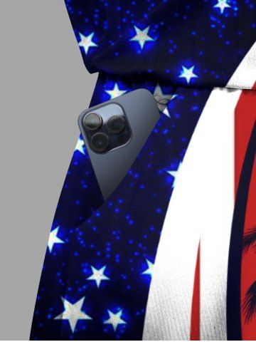 Plus Size Coconut Tree Curve Patriotic American Flag Print Hawaii Drawstring Pocket Romper - Blue - 4x
