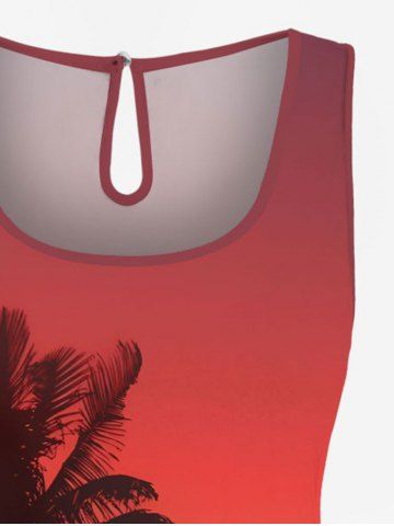 Graphic Pants > Plus Size Coconut Tree Dip Dye Ombre Print Hawaii Drawstring Pocket Romper